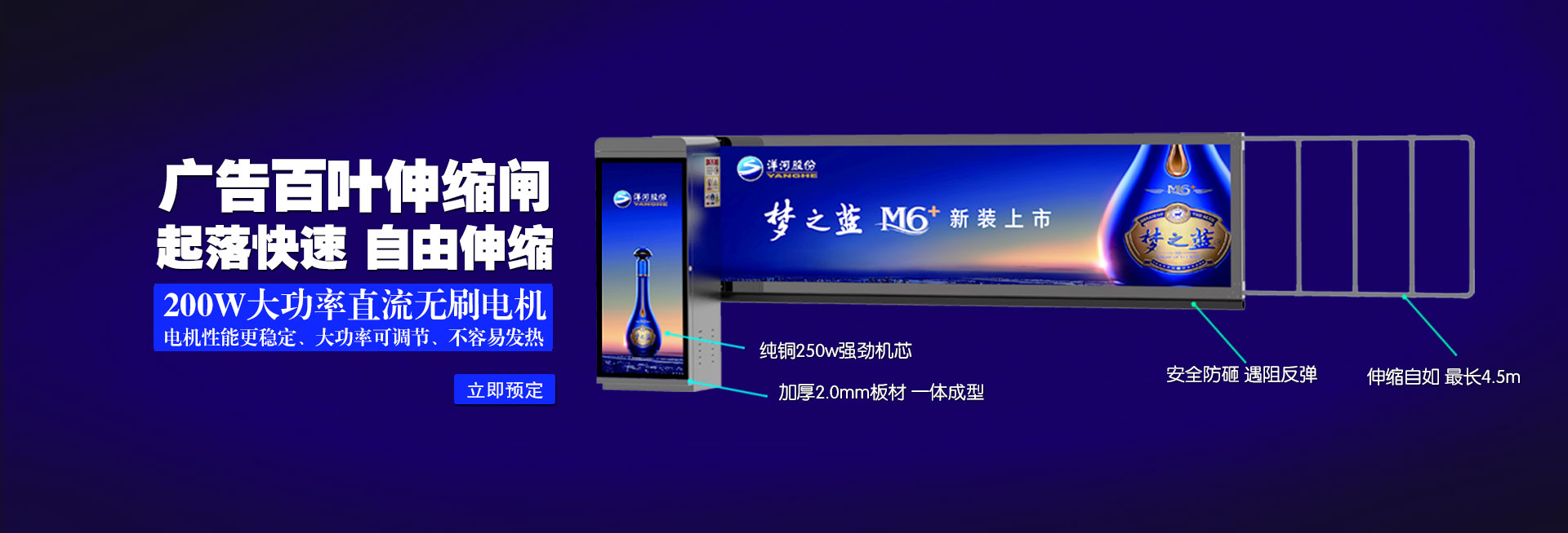 公司創(chuàng)建于2010年,是國(guó)內(nèi)智能出入管理系統(tǒng)行業(yè)最具規(guī)模的集研發(fā)設(shè)計(jì)、生產(chǎn)制造、營(yíng)銷推廣于一體的品牌企業(yè)之一。公司主打產(chǎn)品為拉布燈箱閘、車牌識(shí)別道閘一體機(jī)、廣告伸縮道閘、百葉廣告道閘、直桿道閘、柵欄道閘、折臂道閘、智能人行門、車牌識(shí)別、廣告護(hù)欄等。